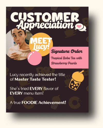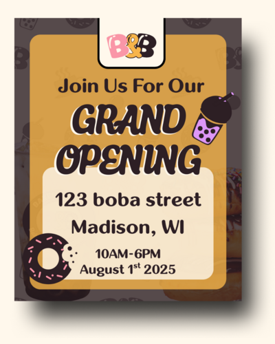 Bakes & Boba is a passion project that blends fun, baked goods with playful flavored boba drinks. This brand was designed to be playful, warm, and fun; without seeming overly childish or sacrificing professionalism and trust. The atmosphere of the cafe is comforting and feels like an iconic neighborhood favorite that tends to the local community as well as the socially-savvy foodies of the online space. Website design coming soon!